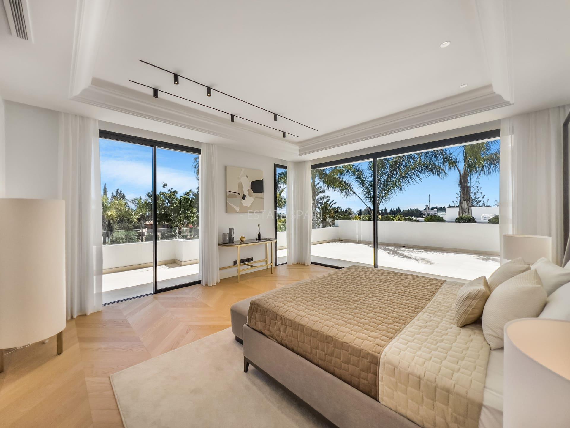 Новая, меблированная вилла недалеко от моря в Марбелье, Андалусия, Коста-дель-Соль. В вилле площадью 647 кв.м есть 6 спальных комнат, 6 санузлов, гостиная и кухня.