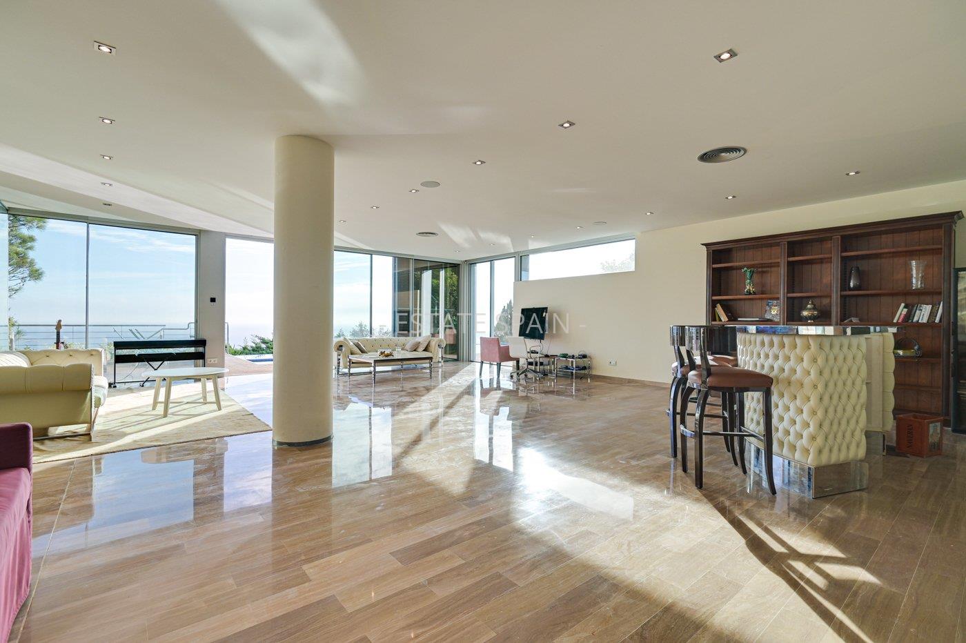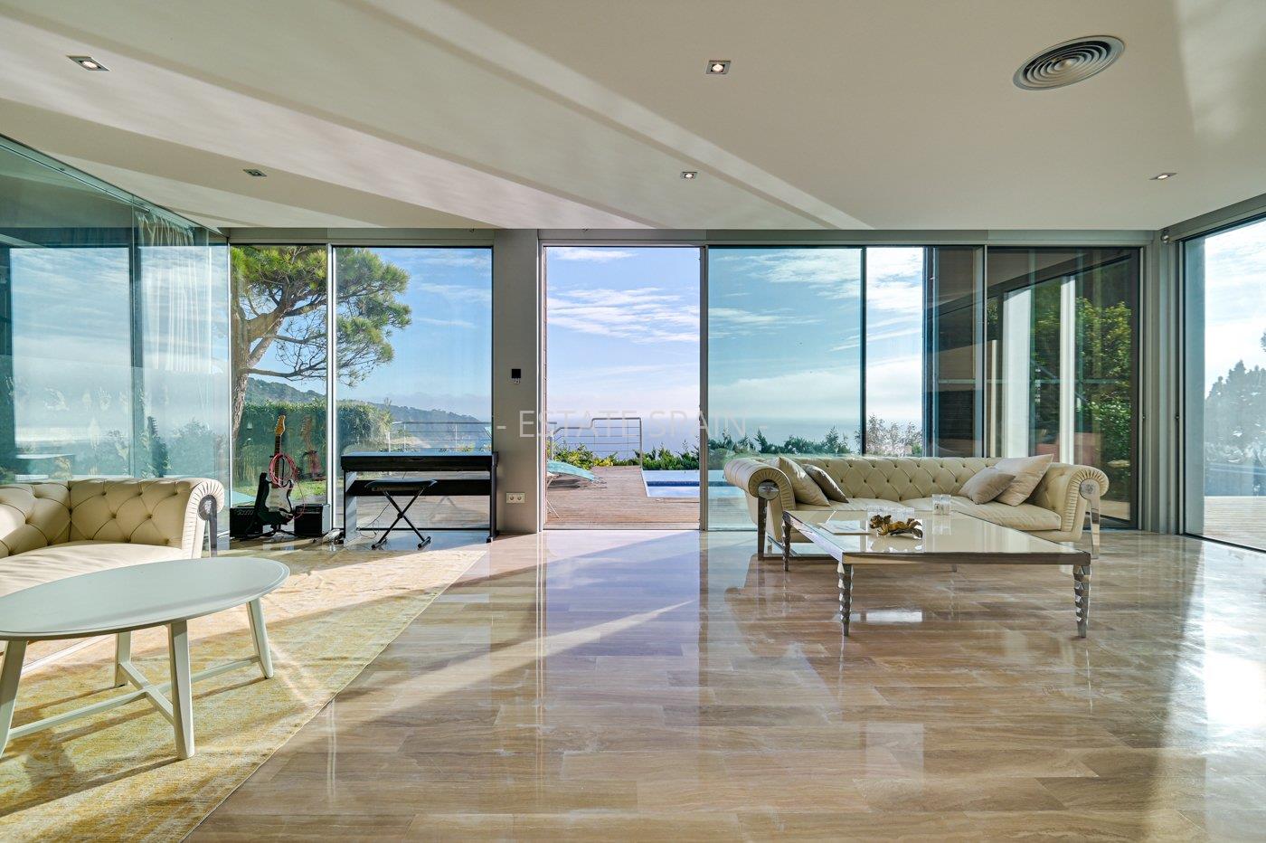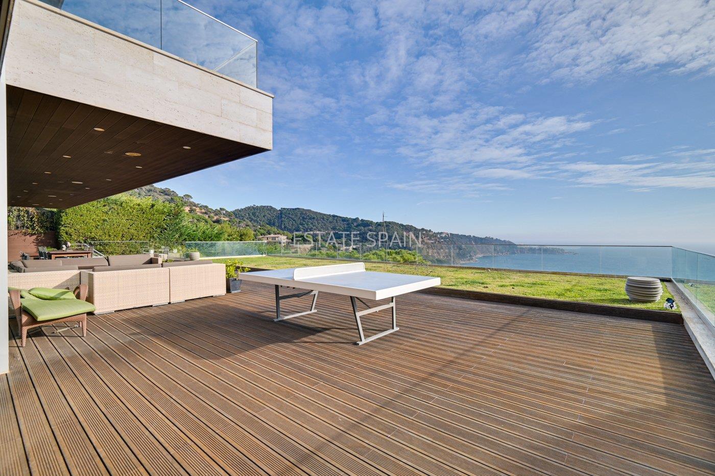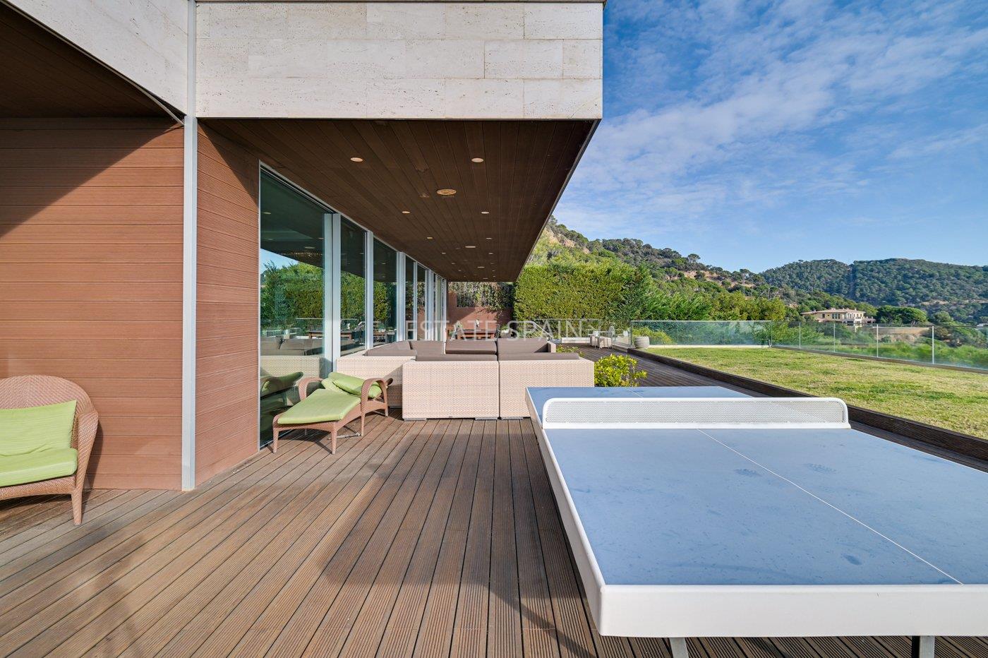 Вилла недалеко от моря в Сан-Фелиу-де-Гишольс, Каталония, Коста Брава. В вилле площадью 1110 кв.м есть 6 спальных комнат, 8 санузлов, гостиная и кухня. На территории есть сад.
