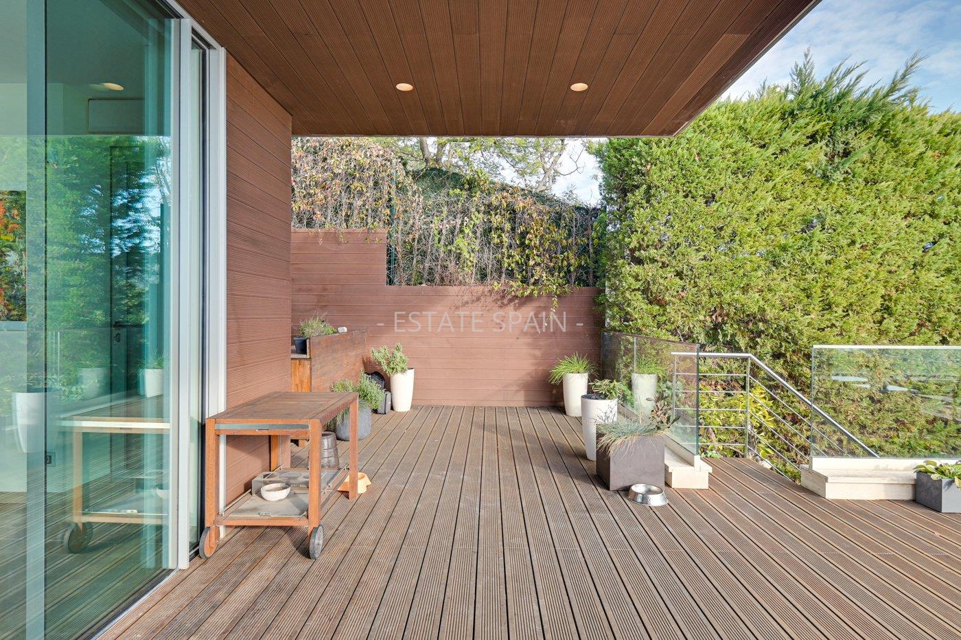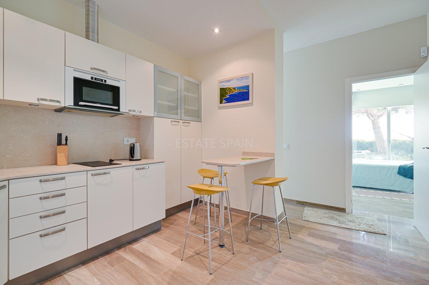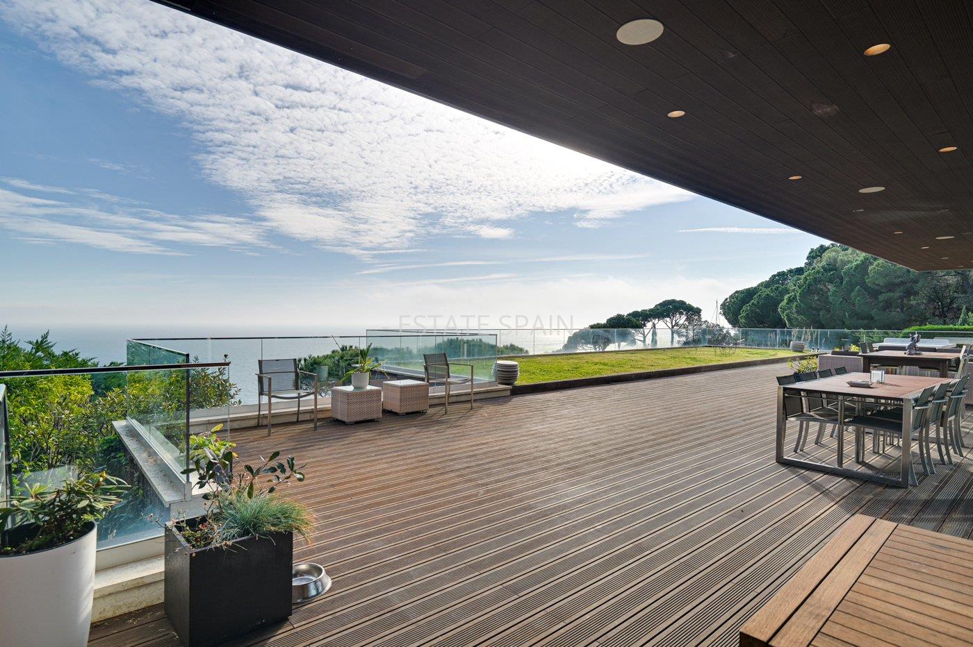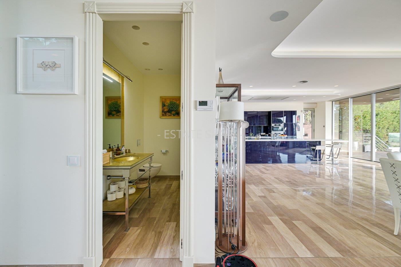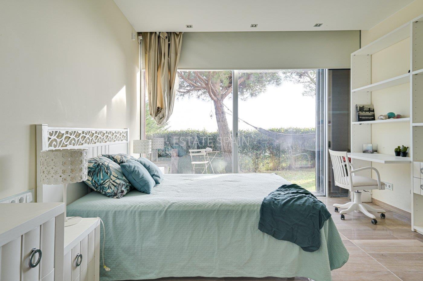 Вилла недалеко от моря в Сан-Фелиу-де-Гишольс, Каталония, Коста Брава. В вилле площадью 1110 кв.м есть 6 спальных комнат, 8 санузлов, гостиная и кухня. На территории есть сад.