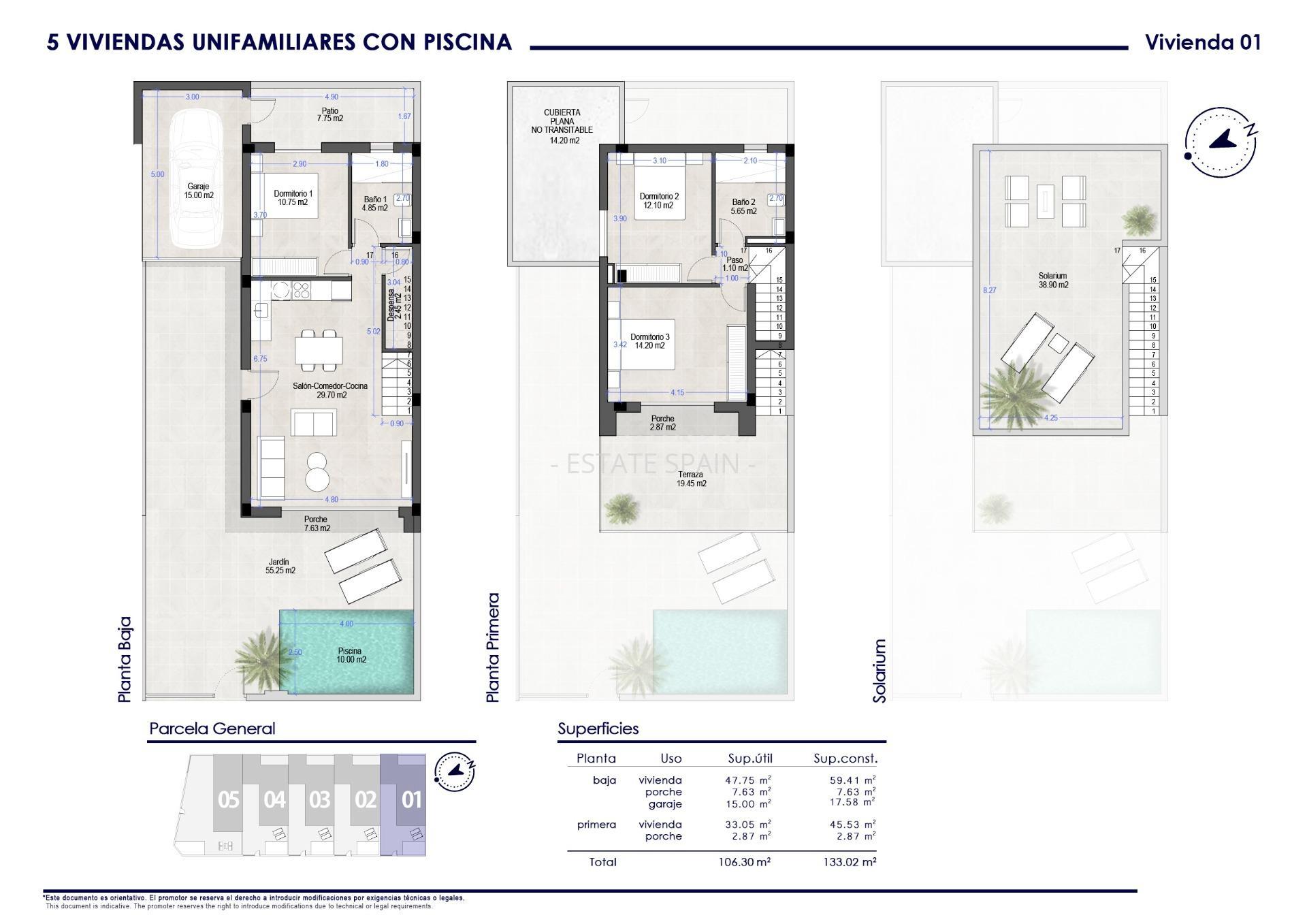 Новая вилла в Сан-Педро-дель-Пинатар, Коста Калида. В вилле площадью 133 кв.м есть 3 cпальни, 2 санузла, гостиная и кухня. На территории есть сад.