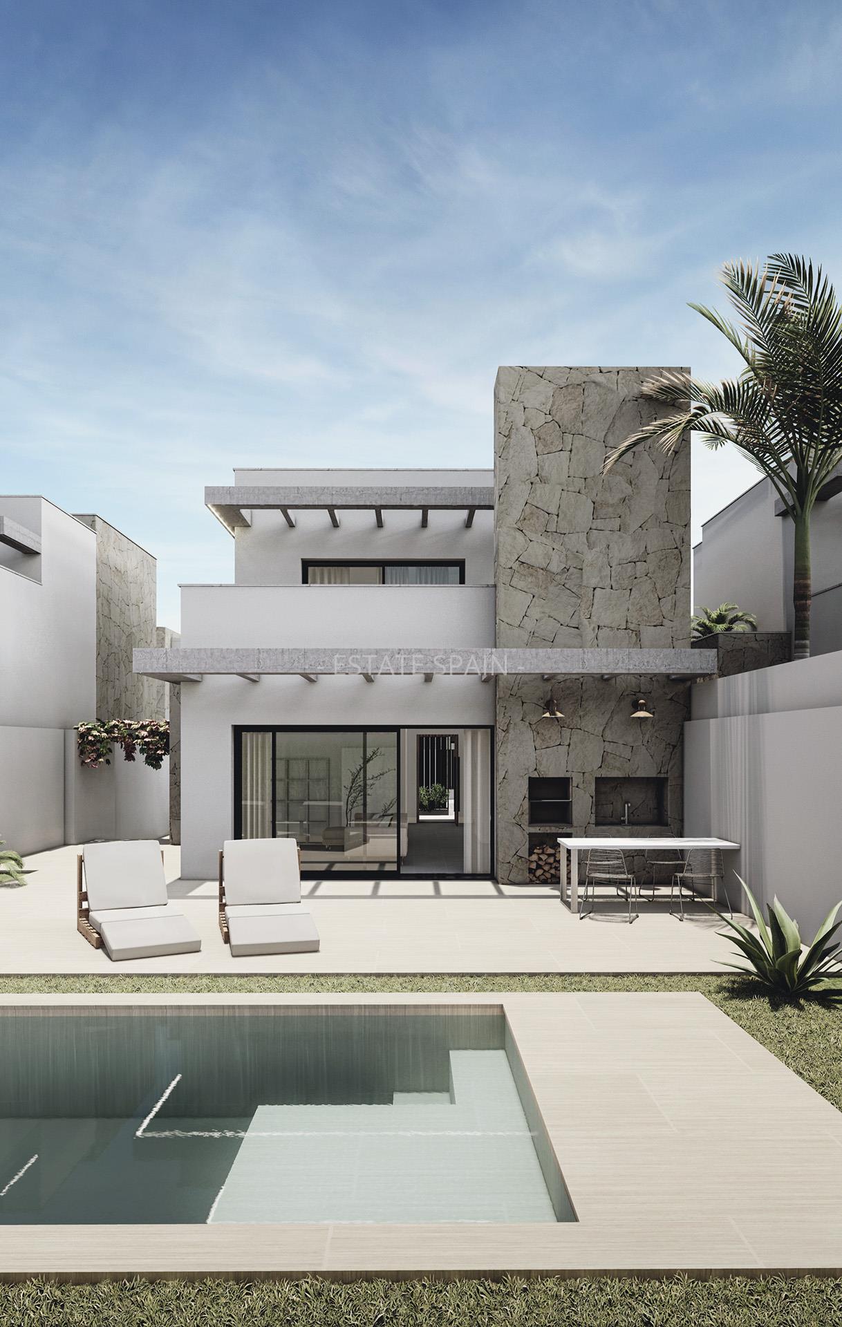 Новая, меблированная вилла недалеко от моря в Сан-Хуан-де-лос-Террерос, Андалусия, Коста-де-Альмерия. В вилле площадью 125 кв.м есть 3 cпальни, 2 санузла, гостиная и кухня. На территории есть сад.