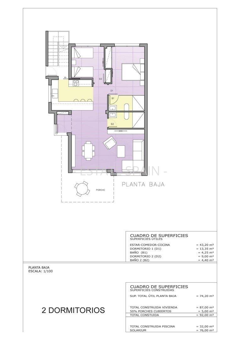 Новая, меблированная вилла недалеко от моря в Картахене, Коста Калида. В вилле площадью 92 кв.м есть 2 cпальни, 2 санузла, гостиная и кухня. На территории есть сад.