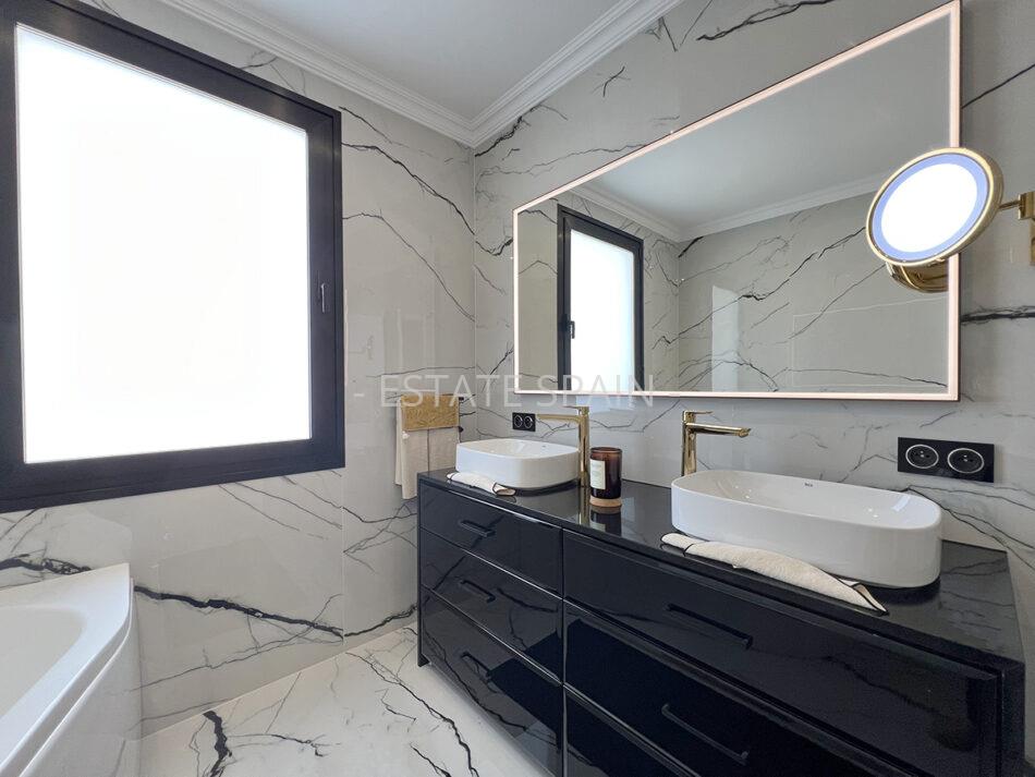 Вилла обладает рядом преимуществ: установлена система сигнализации, итальянская мебель, современная кухня, изысканные светильники, продуманное освещение и подсвечиваемые потолки в каждой комнате. Высота потолков составляет 2,7 метра.