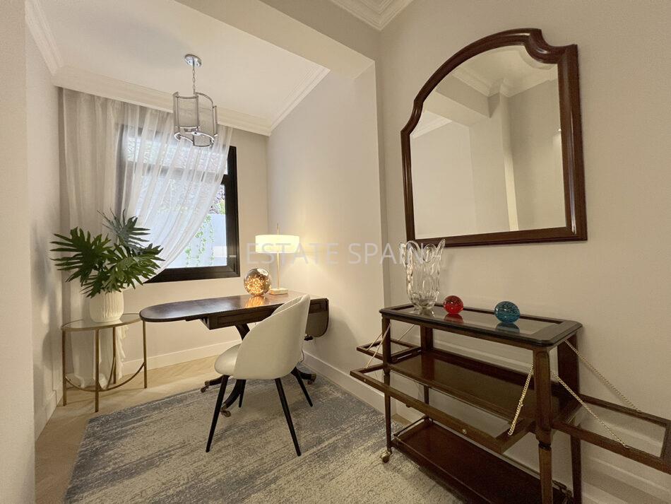 Основной уровень включает большую прихожую, отдельную кухню с выходом на террасу, просторную гостиную с прямым доступом к бассейну и террасе, три спальни, кабинет, две ванные комнаты и гостевой санузел.