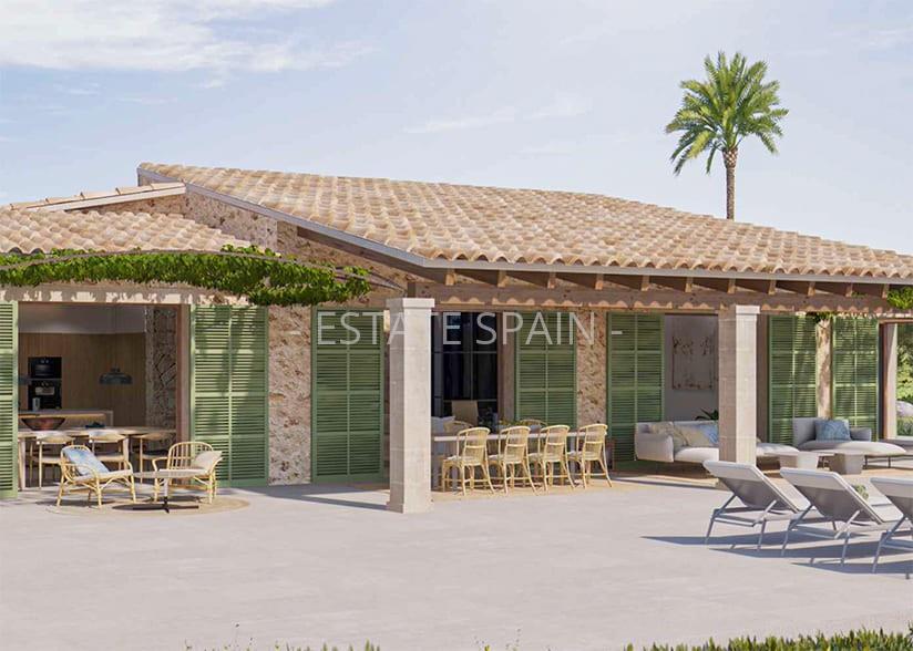 Новая вилла в Сенселлес, Балеарские острова, Майорка. В вилле площадью 525 кв.м есть 4 cпальни, 4 санузла, гостиная и кухня.