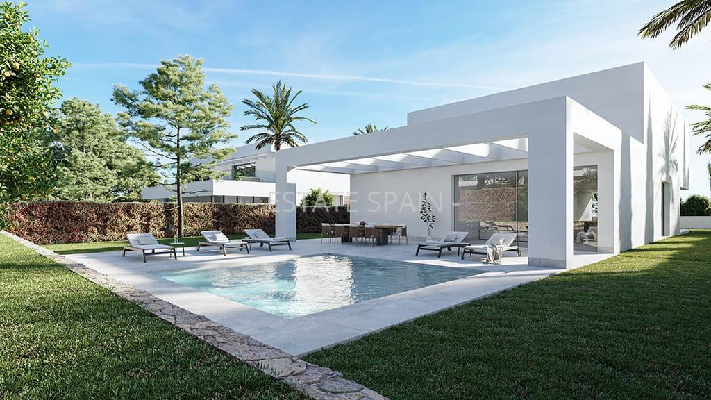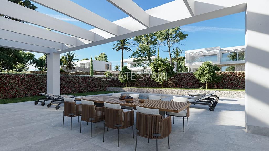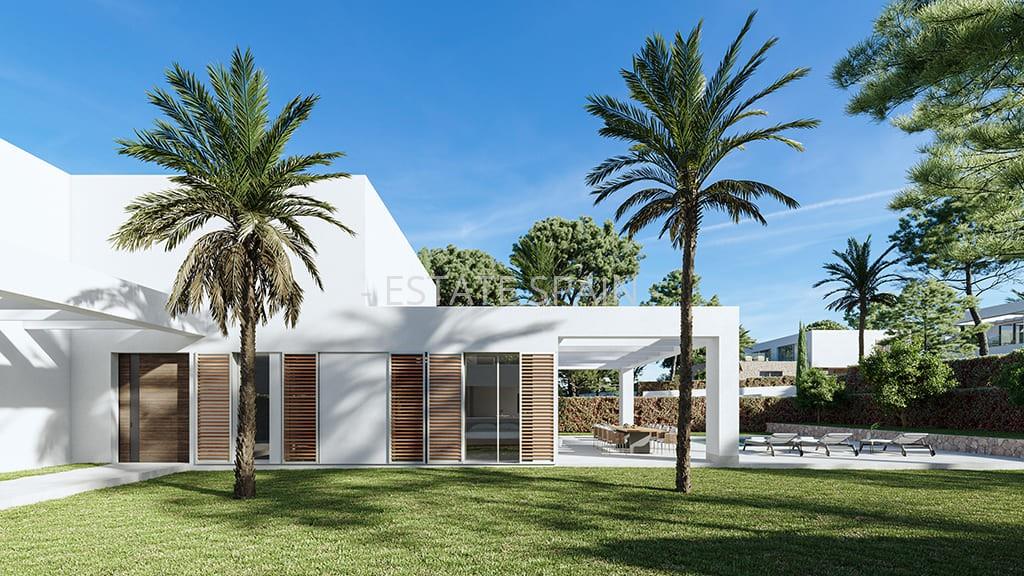 Новая вилла в Кальвия, Балеарские острова, Майорка. В вилле площадью 416 кв.м есть 5 спальных комнат, 6 санузлов, гостиная и кухня.