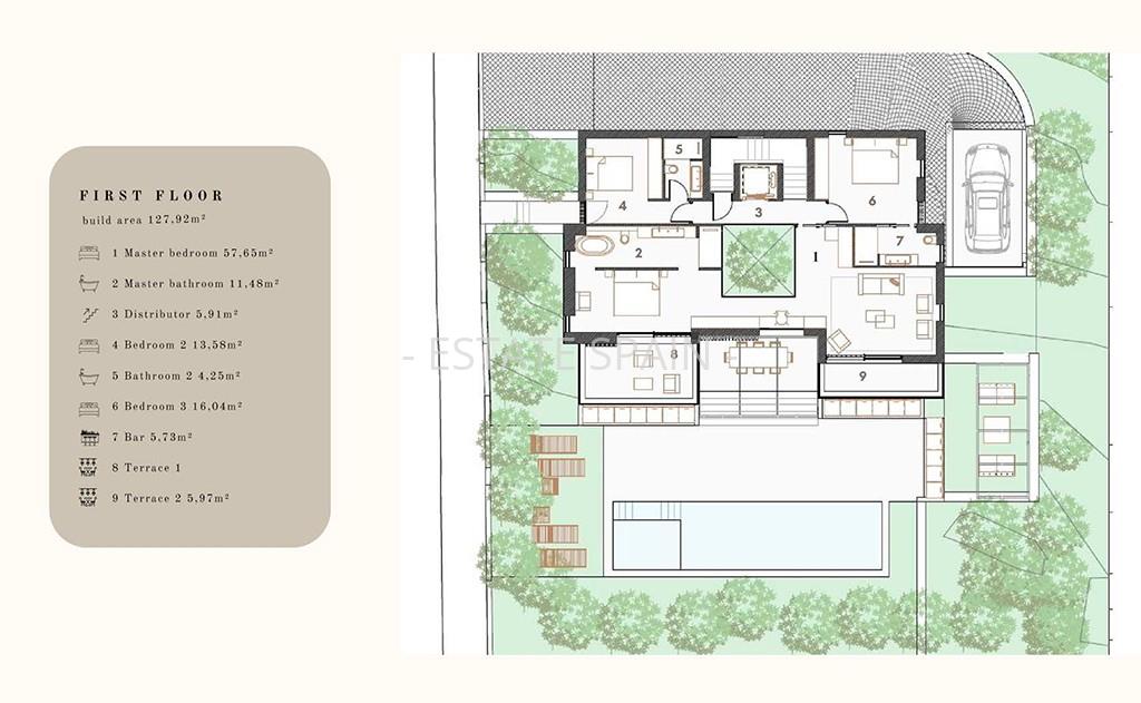 Новая вилла недалеко от моря, Балеарские острова, Майорка. В вилле площадью 484 кв.м есть 4 cпальни, 4 санузла, гостиная и кухня.
