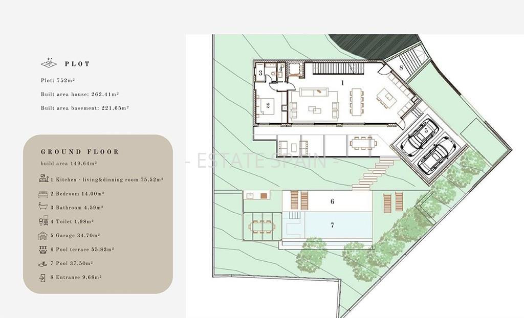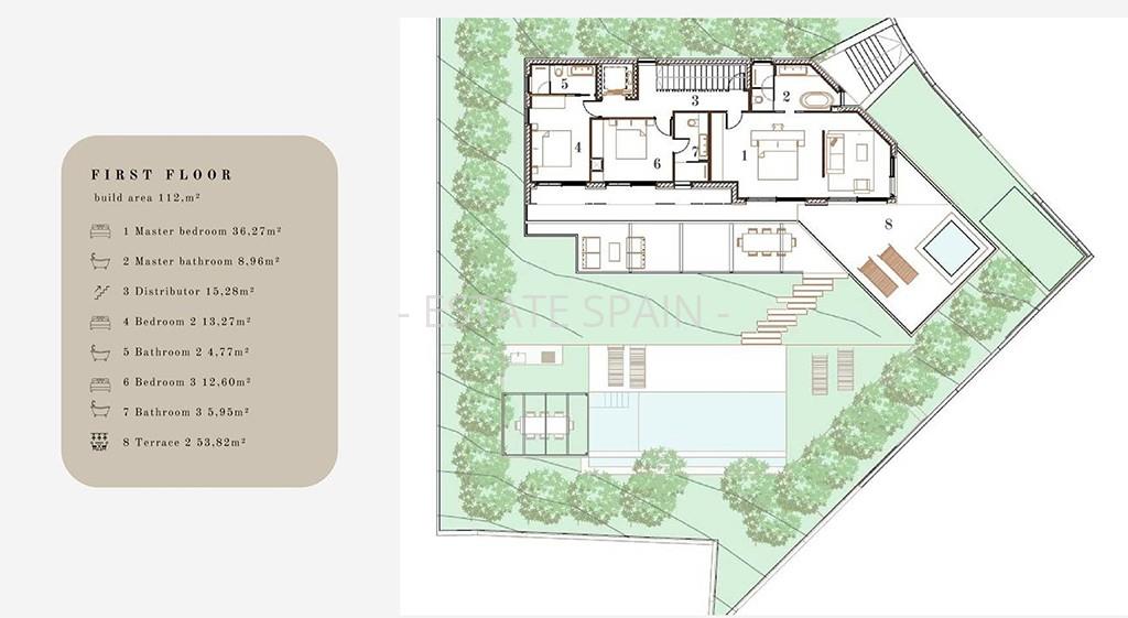 Новая вилла недалеко от моря, Балеарские острова, Майорка. В вилле площадью 484 кв.м есть 4 cпальни, 4 санузла, гостиная и кухня.