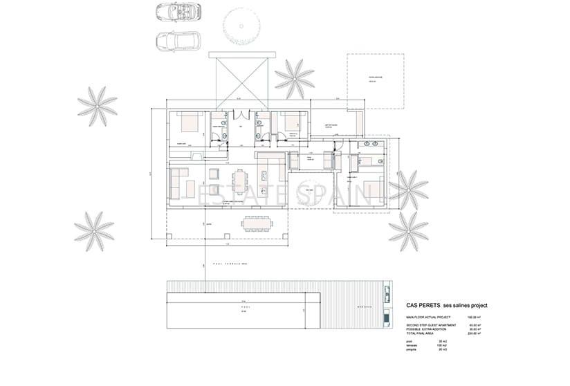 Новая вилла в Кампос, Балеарские острова, Майорка. В вилле площадью 230 кв.м есть 5 спальных комнат, 4 санузла, гостиная и кухня.