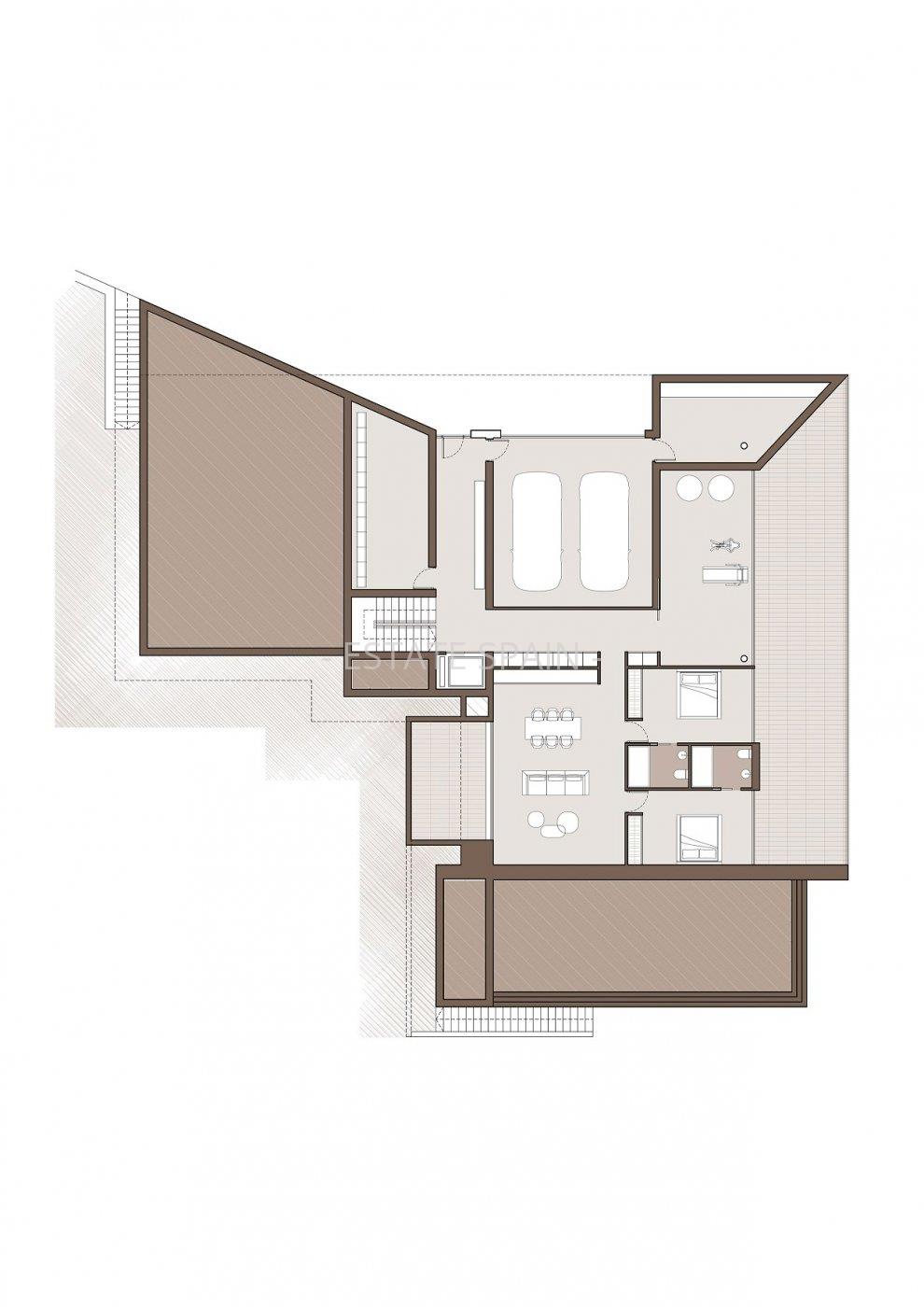 Новая вилла в Кальпе, Коста Бланка. В вилле площадью 370 кв.м есть 5 спальных комнат, 5 санузлов, гостиная и кухня. На территории есть сад.