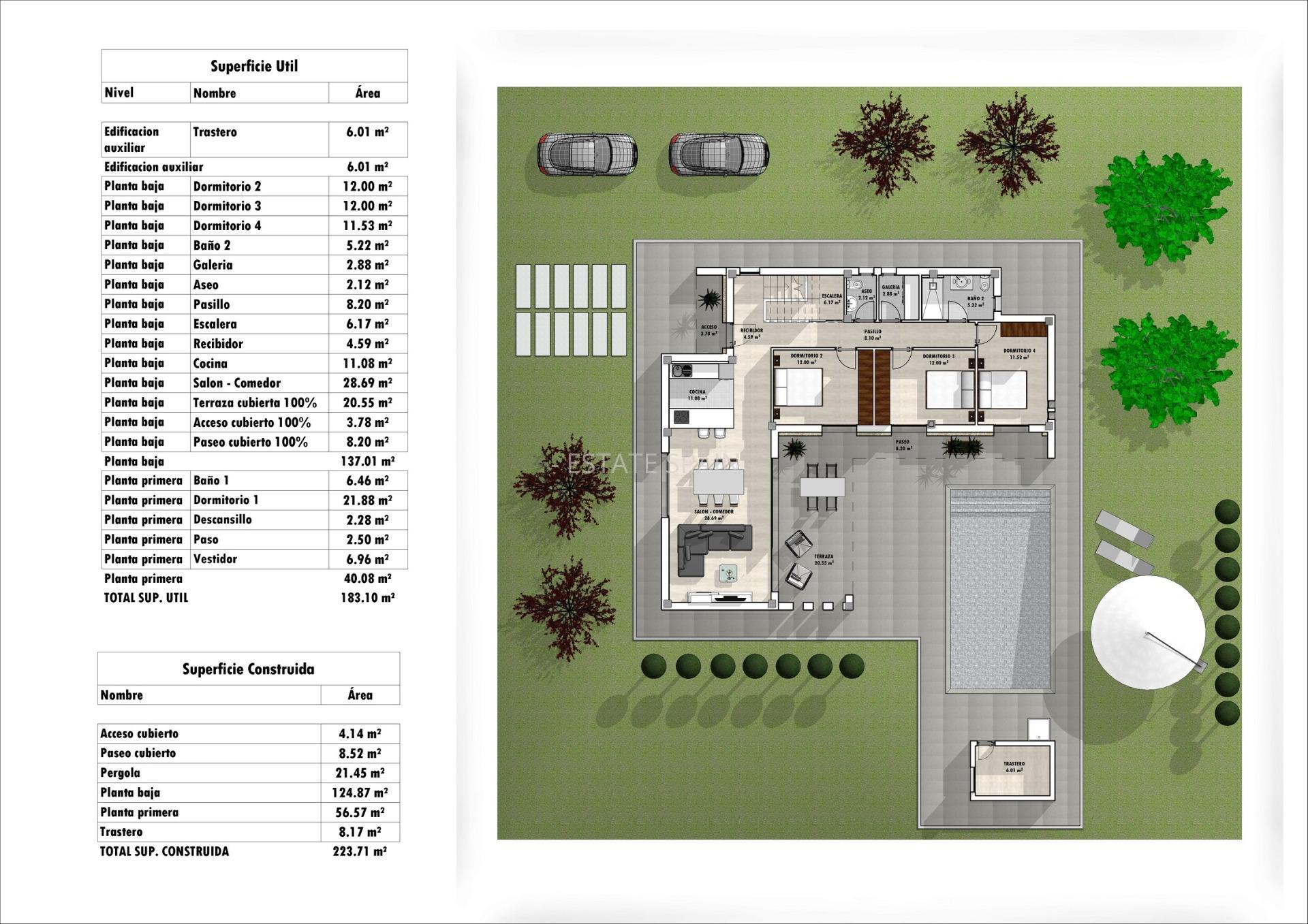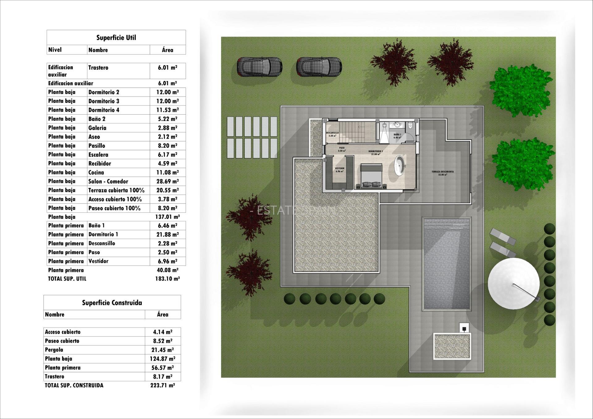 Новая, меблированная вилла в Аспе, Коста Бланка. В вилле площадью 223 кв.м есть 4 cпальни, 3 санузла, гостиная и кухня. На территории есть сад.