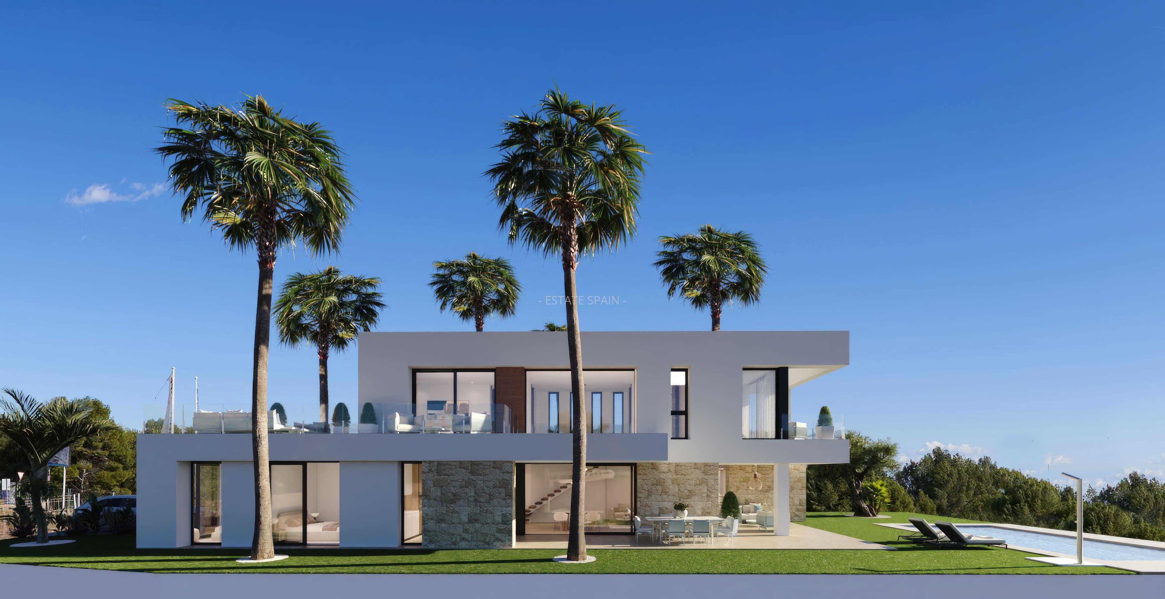 Новая, меблированная вилла в Финестрате, Коста Бланка. В вилле площадью 183 кв.м есть 3 cпальни, 3 санузла, гостиная и кухня. На территории есть сад.