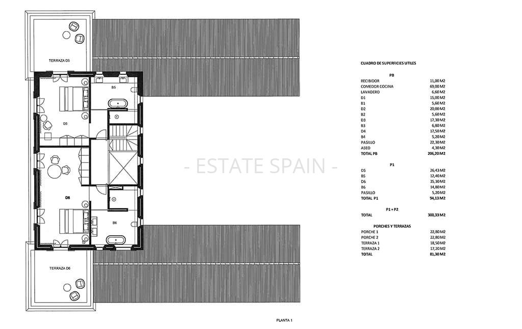 Новая, меблированная вилла в Сантаньи, Балеарские острова, Майорка. В вилле площадью 249 кв.м есть 6 спальных комнат, 6 санузлов, гостиная и кухня.