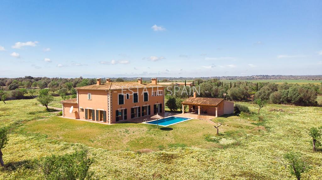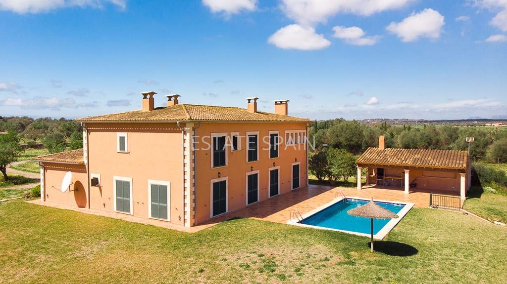 Новая, меблированная вилла в Сантаньи, Балеарские острова, Майорка. В вилле площадью 402 кв.м есть 5 спальных комнат, 5 санузлов, гостиная и кухня.