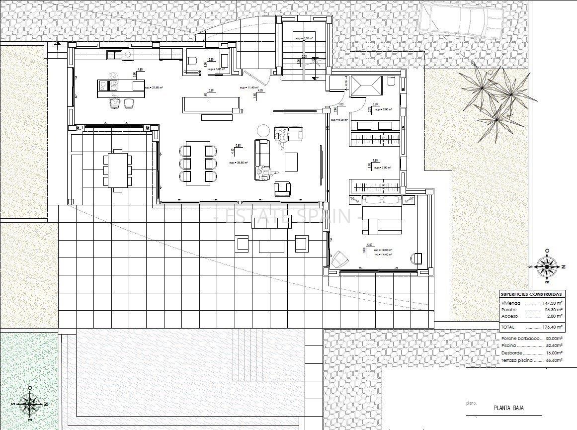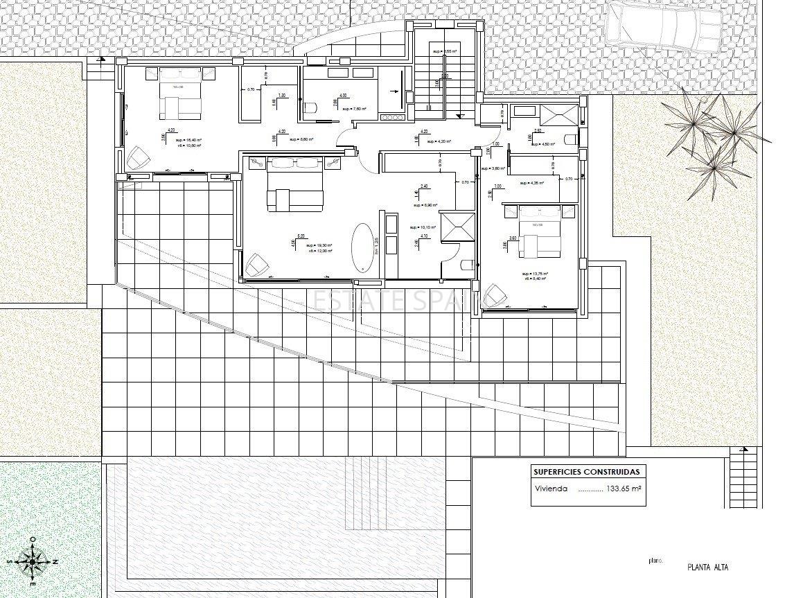Новая вилла в Кальпе, Коста Бланка. В вилле площадью 370 кв.м есть 5 спальных комнат, 4 санузла, гостиная и кухня. На территории есть сад.