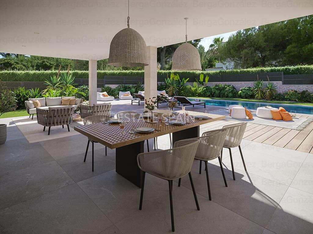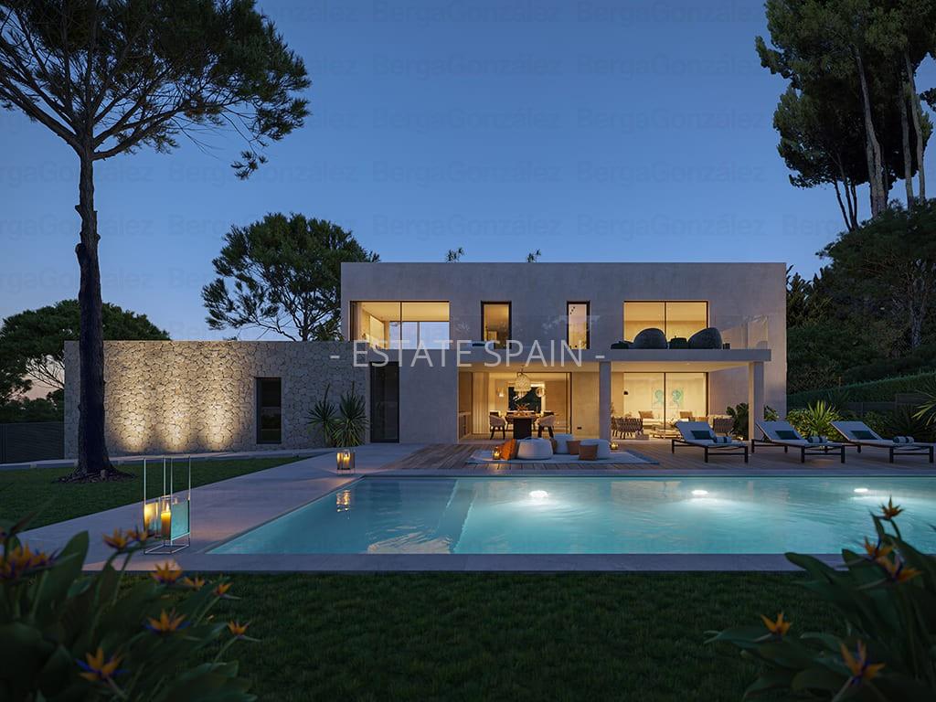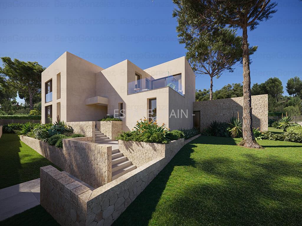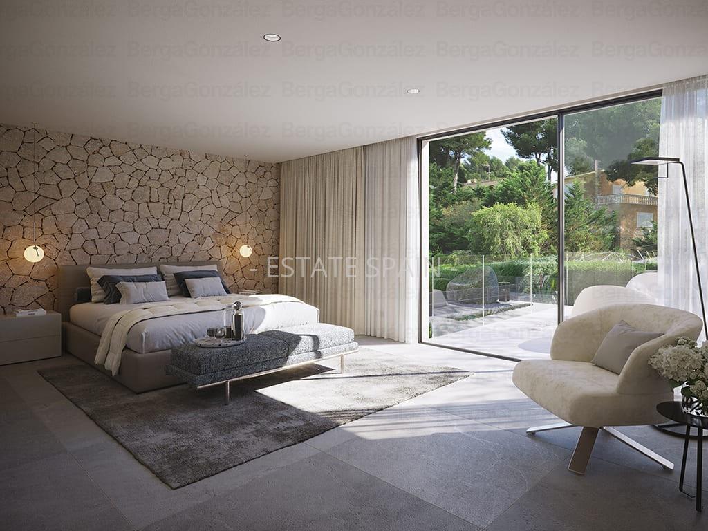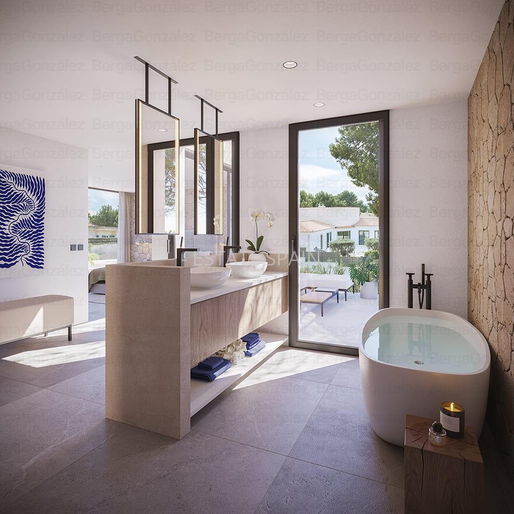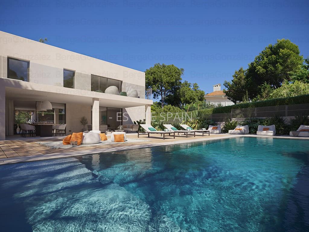 Новая, меблированная вилла недалеко от моря в Санта-Понсе, Балеарские острова, Майорка. В вилле площадью 473 кв.м есть 5 спальных комнат, 5 санузлов, гостиная и кухня.
