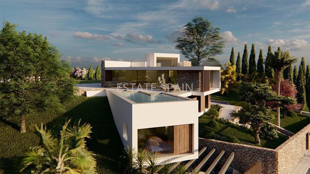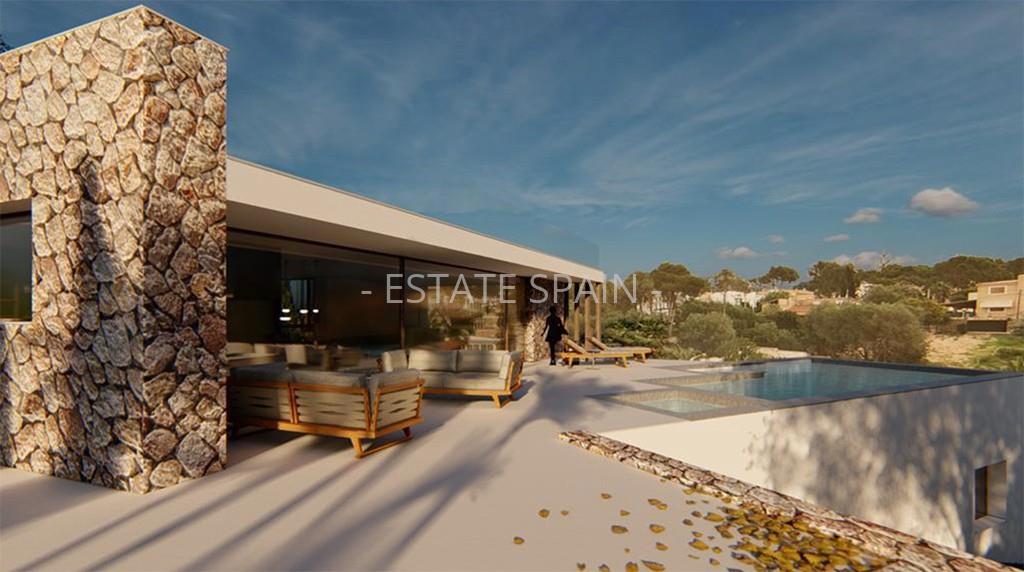 Новая, меблированная вилла недалеко от моря в Кальвия, Балеарские острова, Майорка. В вилле площадью 220 кв.м есть 5 спальных комнат, 6 санузлов, гостиная и кухня.