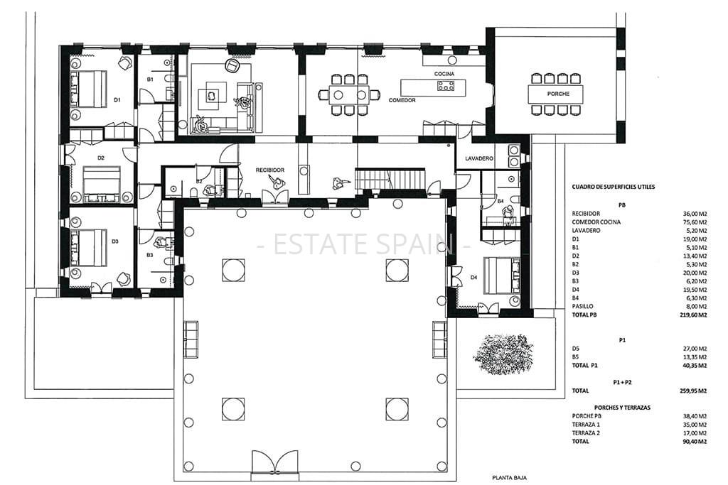 Новая, меблированная вилла недалеко от моря, Балеарские острова, Майорка. В вилле площадью 464 кв.м есть 5 спальных комнат, 5 санузлов, гостиная и кухня.