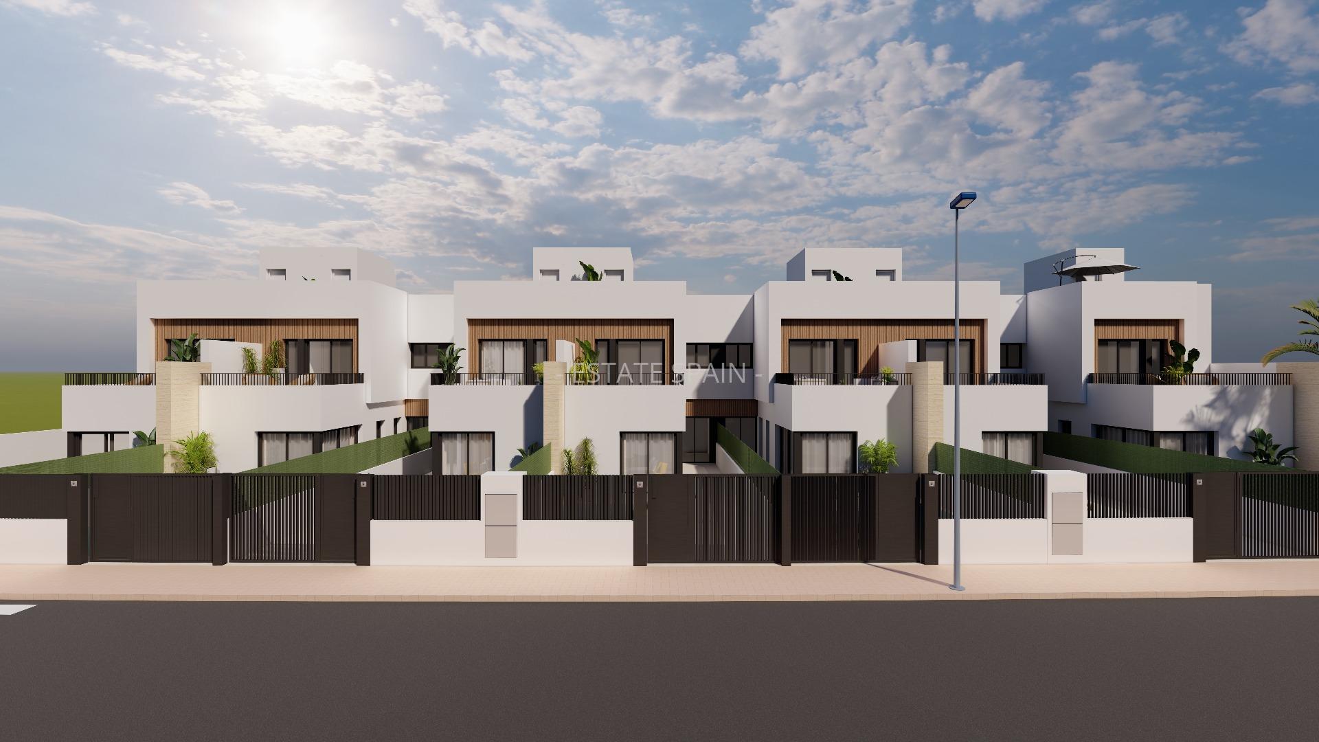 Новая вилла в Сантьяго-де-ла-Рибера, Коста Калида. В вилле площадью 104 кв.м есть 3 cпальни, 2 санузла, гостиная и кухня. На территории есть сад.