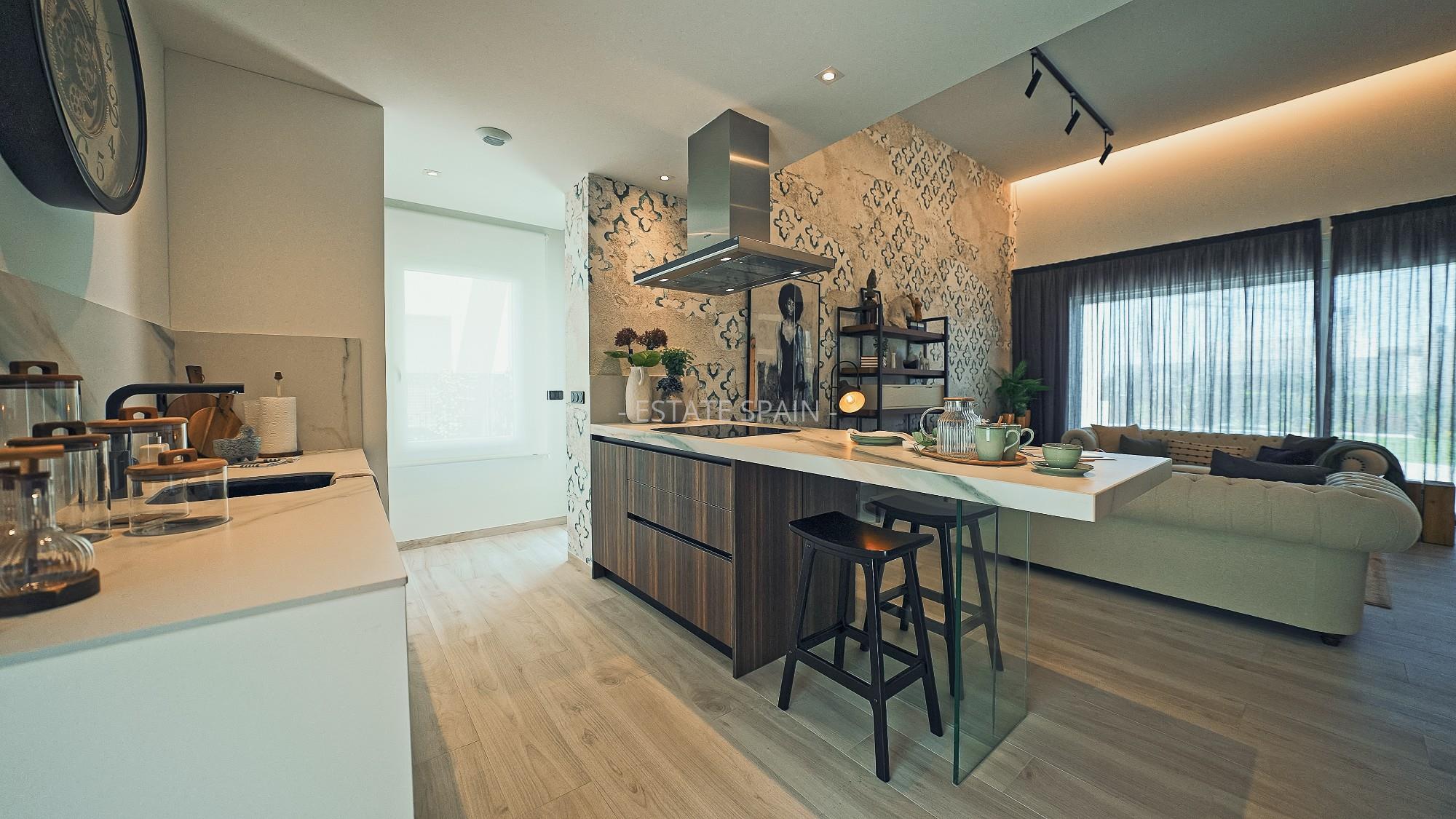Новая, меблированная вилла в Альгорфа, Коста Бланка. В вилле площадью 218 кв.м есть 3 cпальни, 2 санузла, гостиная и кухня. На территории есть сад.