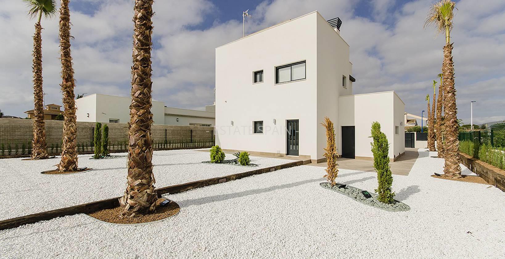 Новая, меблированная вилла недалеко от моря в Деэса-де-Кампоамор, Коста Бланка. В вилле площадью 239 кв.м есть 4 cпальни, 3 санузла, гостиная и кухня. На территории есть сад.