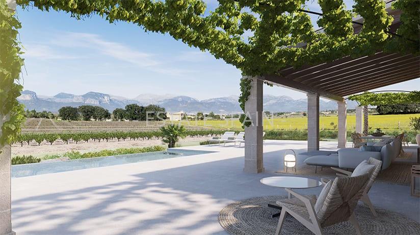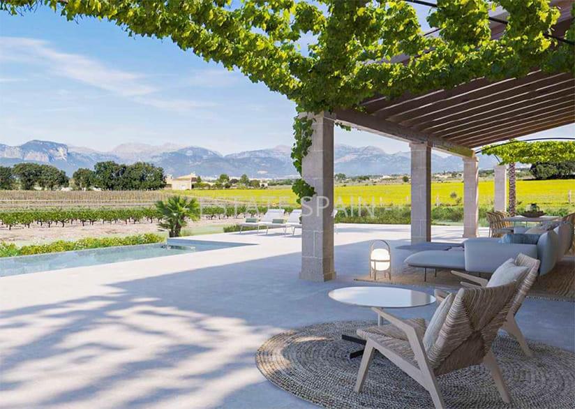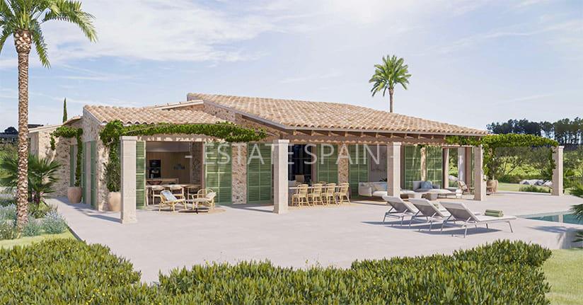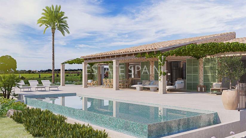 Новая, меблированная вилла в Сенселлес, Балеарские острова, Майорка. В вилле площадью 525 кв.м есть 4 cпальни, 4 санузла, гостиная и кухня.