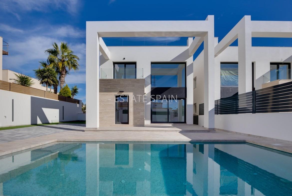 Новая вилла, Коста Бланка. В вилле площадью 238 кв.м есть 4 cпальни, 4 санузла, гостиная и кухня. На территории есть сад.