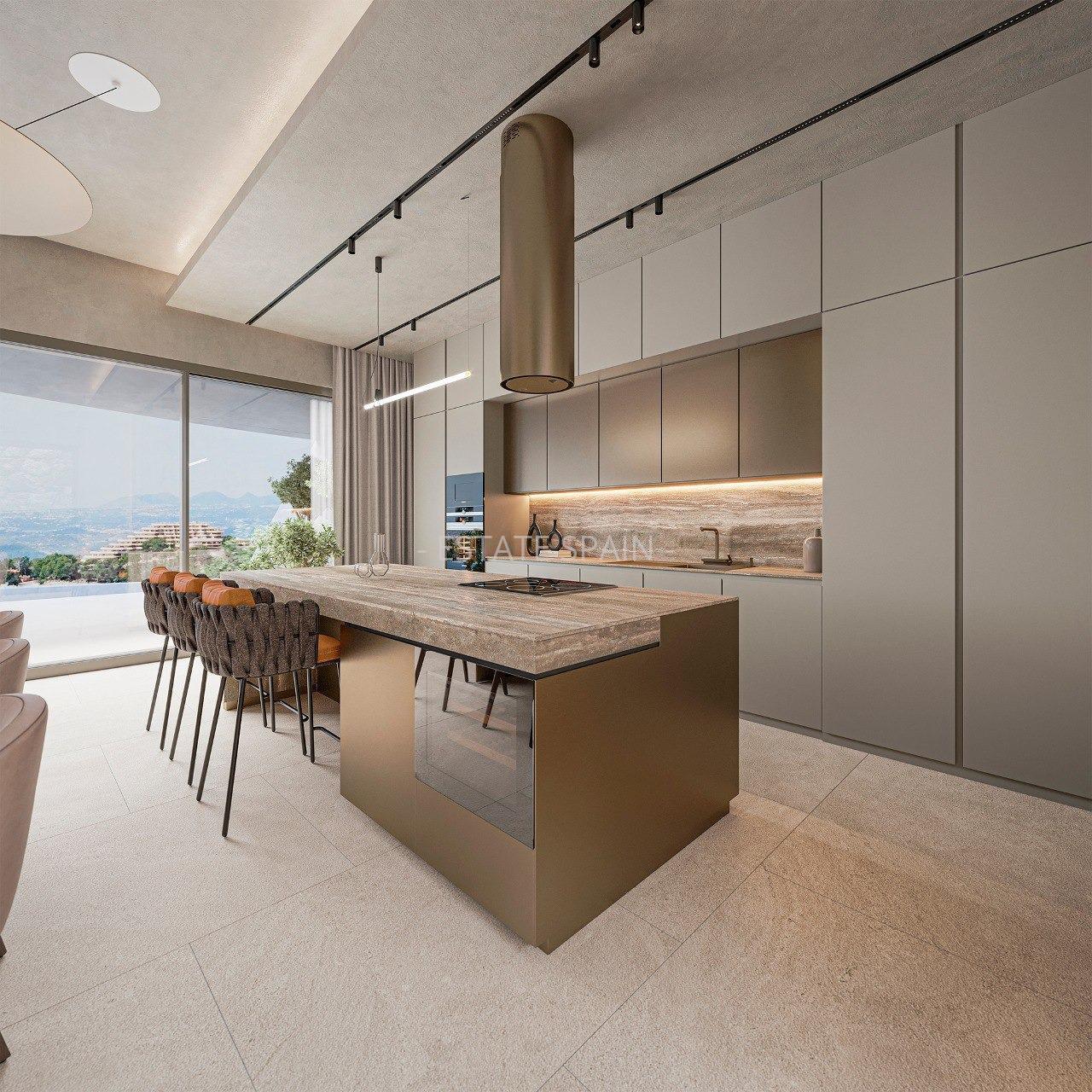 Новая, меблированная вилла в Альтее, Коста Бланка. В вилле площадью 600 кв.м есть 4 cпальни, 4 санузла, гостиная и кухня. На территории есть сад.