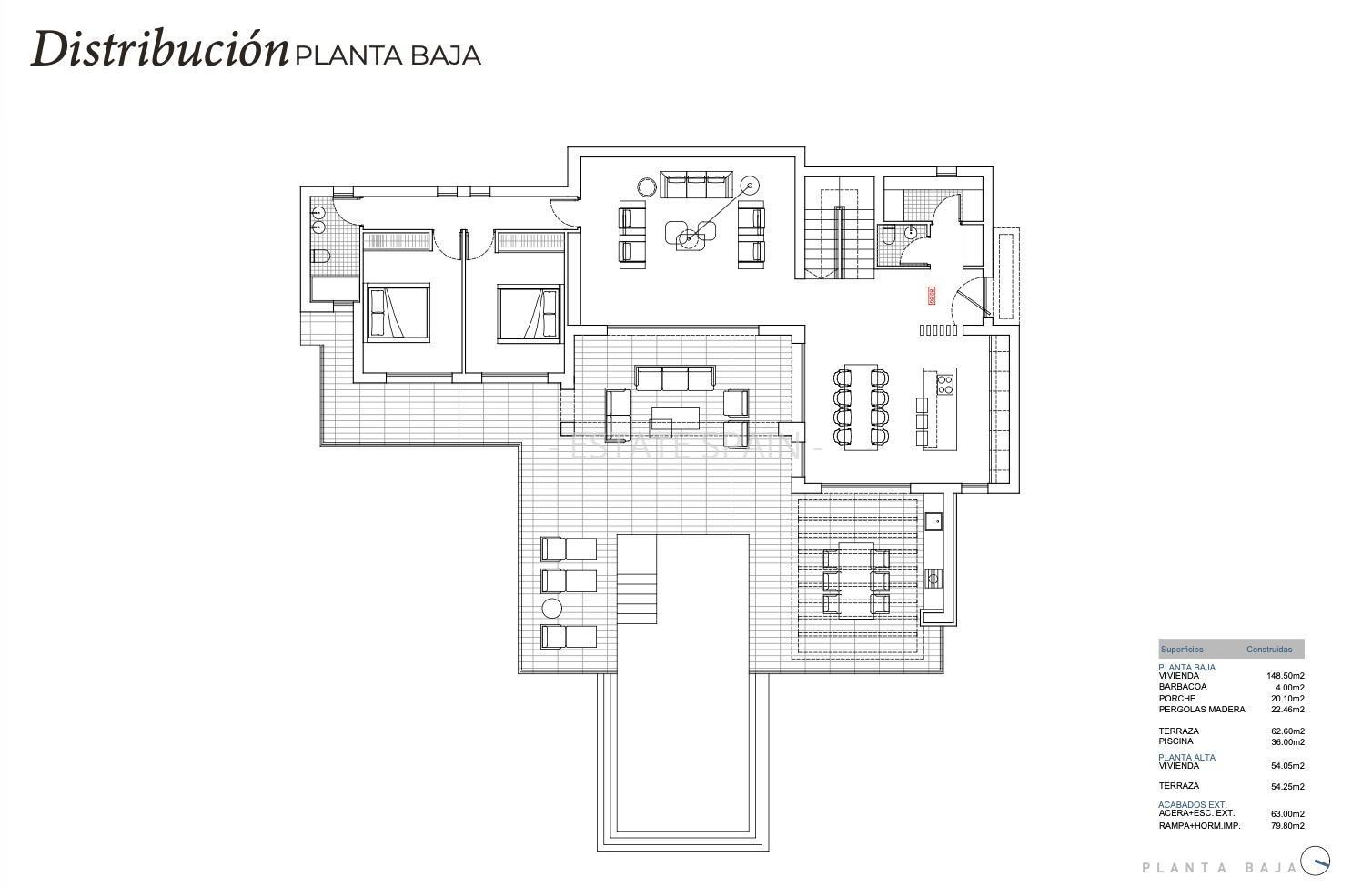 Новая, меблированная вилла недалеко от моря в Кальпе, Коста Бланка. В вилле площадью 227 кв.м есть 3 cпальни, 3 санузла, гостиная и кухня. На территории есть сад.