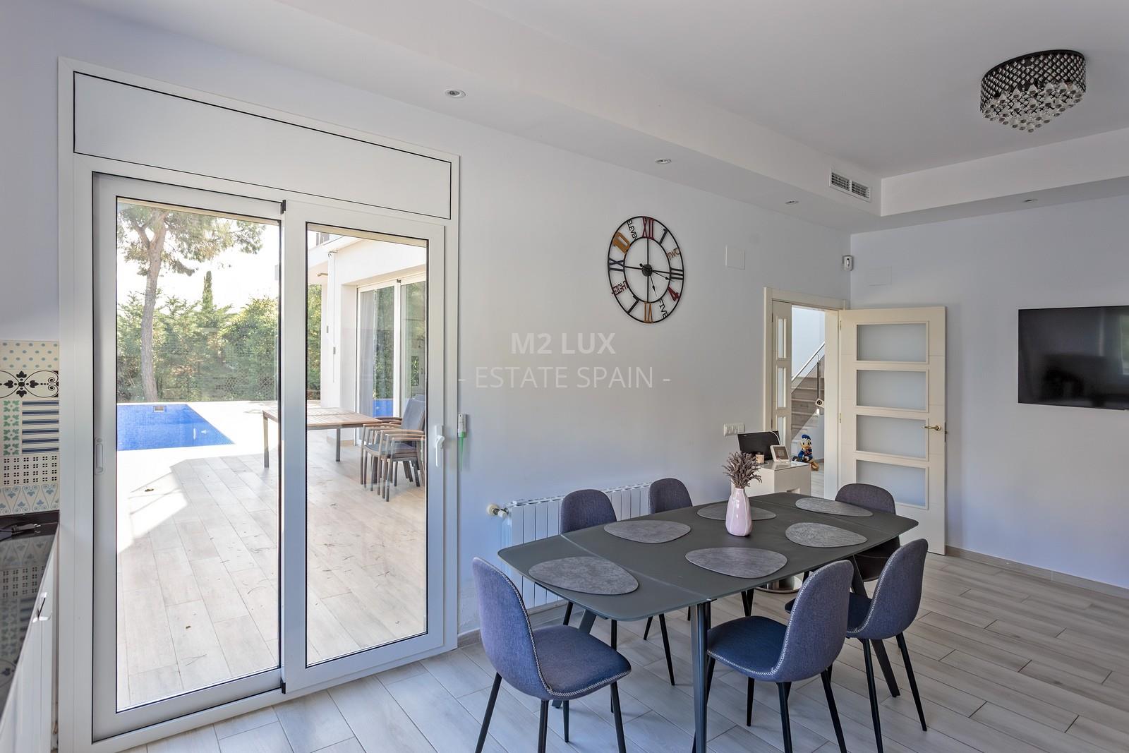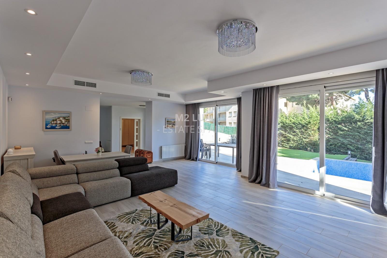 Дом отличается превосходным расположением, он находится в тихом зеленом районе вдали от шума города. Расстояние до ближайшего пляжа Platja Cala Belladona составляет всего 400 метров, прогулка до него займет у вас лишь 6 минут, до пляжа Platja Cala Cap Roig – 450 метров (7 минут пешком).